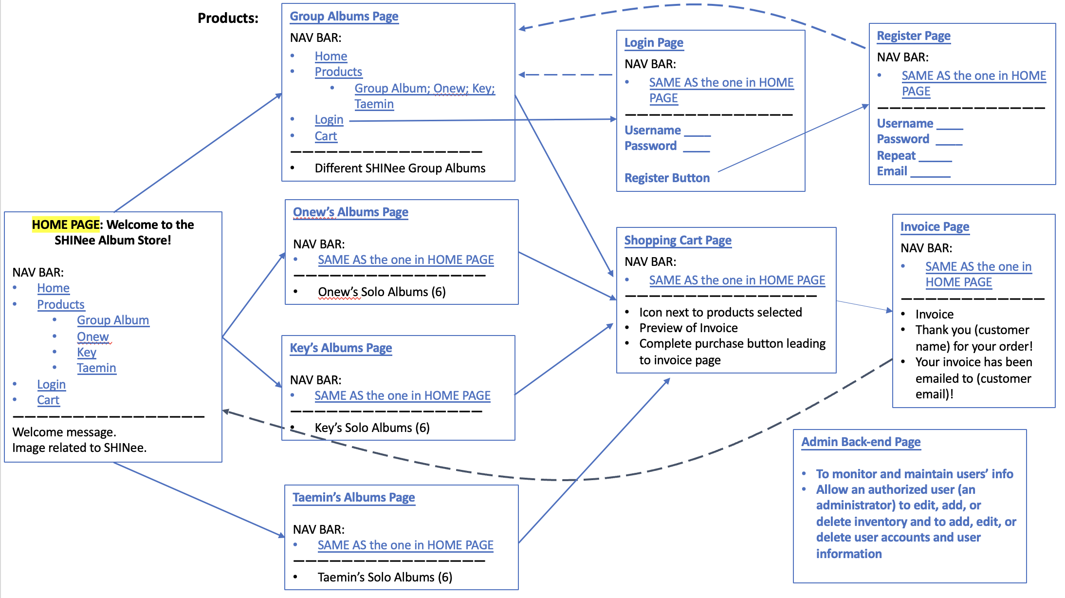 We plan to have a separate page for the shopping cart where users can view and edit the quantities of the products that they had selected. It will look similar to the invoice page where users can preview the item and quantity before confirming the purchase. The cart will store the user’s purchase information based on the data within the user’s session. Once the user selects a quantity for the product they want, they can add it to the cart.